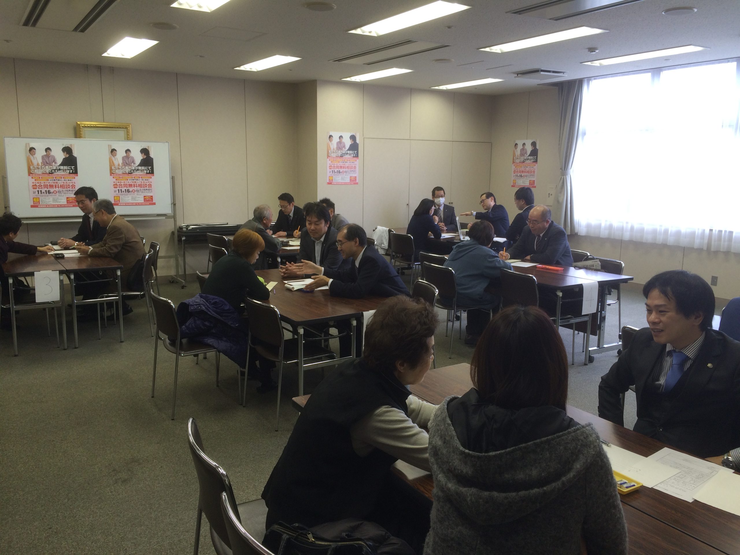 常設相談所 納税者サービスの一環として、税理士が税に関するご相談にお答えする税務相談所を設置しています。ご相談は無料です。 ご来所またはお電話で、お気軽にご相談ください。 お一人(一組)あたりの相談時間は、30分程度とさせていただきますことをご了承ください。 ●相談日時:平日(月~金) 午前9時30分~12時00分 ※受付時間:11時30分(祝祭日を除く) ●場所:郡山税理士会館内 郡山税務相談所(郡山市堤下町8番10号) ●お問い合せ:024-922-9488 ※事前の予約などは必要ありませんが、場合によってお待たせすることがございます。 ご心配な方は事前にお問い合せください。 ※今まで電話相談のみでしたが、令和5年6月から通常に戻し対面での相談を受け付けます。 無料相談会 ●六士業合同無料相談会 毎年11月に、郡山市を中心として活動している専門家による合同無料相談会を開催しています。 司法書士、社会保険労務士、税理士、不動産鑑定士、土地家屋調査士、中小企業診断士がそれぞれの立場から市民の皆様や事業主・経営者、企業の方々に対し、労務・登記・税務・不動産の評価鑑定等の相談に個別に対応します。 ●税理士記念日行事『税の無料相談会』 現行の「税理士法」の前身である「税務代理士法」が昭和17年2月23日に制定されました。私ども税理士はこの日を「税理士記念日」とし、毎年この税理士記念日(2月23日)を中心に、市民の皆様及び納税者に対し無料税務相談等の活動を行っております。