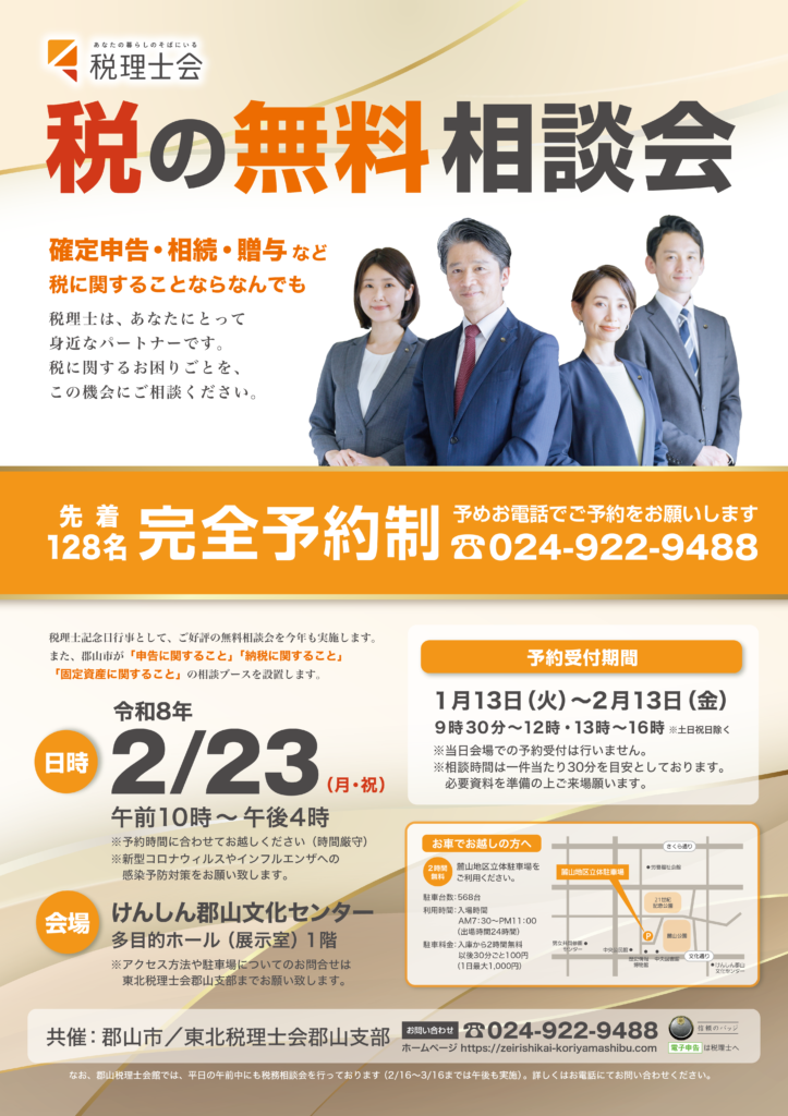 今回は郡山市との共催になりました。それに伴いまして、郡山市が「申告に関すること」